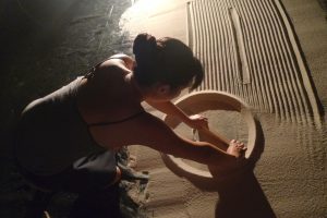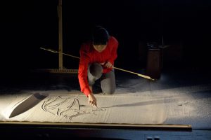 Kimi Maeda’s solo performance, Bend, tells the true story of two men incarcerated in a Japanese American internment camp during World War II: Maeda’ s father, an Asian art historian who suffered from dementia at the end of his life, and the subject of his research, Isamu Noguchi. Weaving together live feed projections of sand drawings with archival footage from the 1940s, Maeda’s performance poses important questions about how the Japanese American internment camps will be remembered.