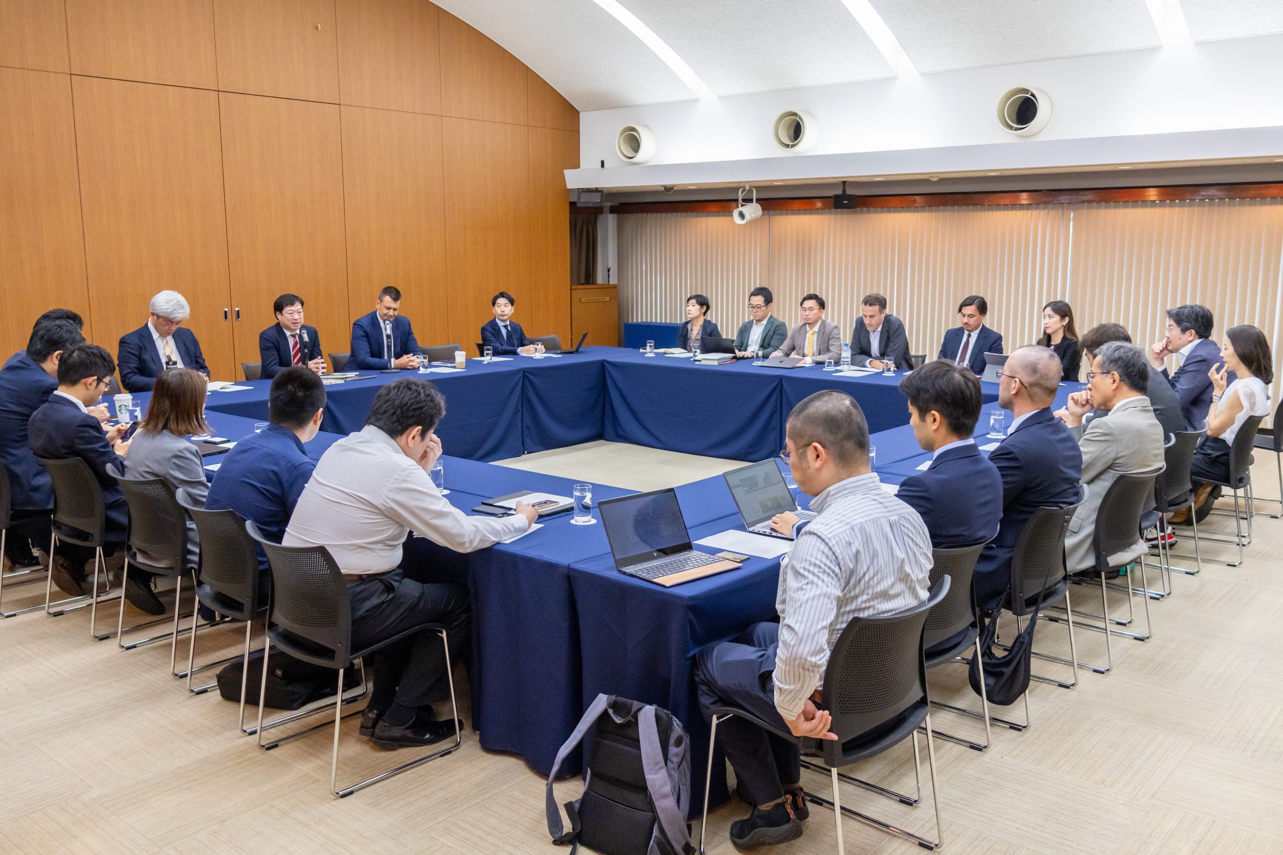 The roundtable addressed the ongoing military conflicts in Ukraine and the Middle East, as well as the growing security challenges in the Indo-Pacific region. The discussion centered on the recent surge in defense budgets and the rapid expansion of defense industries in European countries following Russia’s invasion of Ukraine, alongside Japan’s response to shifting security dynamics in the Indo-Pacific. Participants also explored the broader economic impacts of these security developments, including sanctions on Russia and supply chain issues with China.