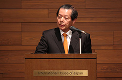 The next speaker was Dr. Funabashi Yoichi, former editor-in-chief at the Asahi Shimbun. Speaking from years of experience covering American affairs, Funabashi shared his views on key issues for the United States—particularly its involvement in the Asia-Pacific region, its dependence on the Chinese economy, the threats of the Middle East, and the security of oil-based energy—and underlined the need for a restructuring of Japan-US relations.