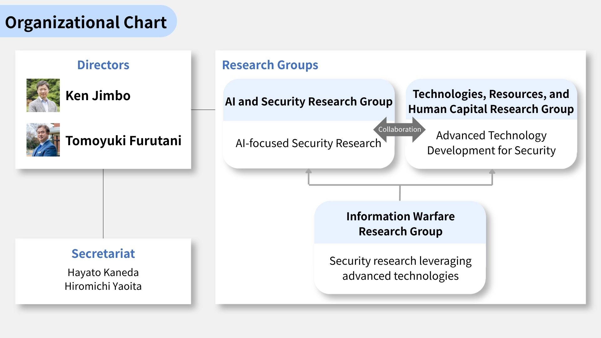 At RAIS, technology-driven security research forms the cornerstone of our mission. We are committed to playing a central role in building Japan’s defense and security innovation ecosystem — advancing collaborative research with government agencies, international partners, and a broad range of private-sector organizations from prime contractors to cutting-edge startups. At the same time, we are deeply invested in cultivating the next generation of researchers who can operate effectively across multiple domains.