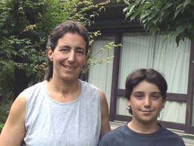 Ellen is a professional craftsperson who came to Japan to study and document traditional Japanese textiles, specifically those techniques which have bearing on and influence her own work. Among those techniques are the katazome style using a rice-paper stencils and shibori tye-dyeing. She also re-established ties with various Japanese quilters she met while visiting the country in 1997, especially with quilters who use old kimono fabric in their works..Ellen and Japanese quilt maker Yoko Ueda presented two quilts, done in collaboration, at an IHJ Artists’ Forum on November 25th. Their quilts were on display in the I-House lobby for ten days preceeding and following the Forum.She is pictured shortly after arrival in Japan with her 10 year old son, Ari.