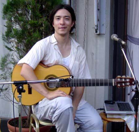 Latin guitarist Ray Sandoval joined together with a group of Japanese Latin music players to present an evening of music in the gardens of the I-House. Shakuhachi master Hozan Yamamoto joined in on two pieces that Ray composed. Ray, who is half-Japanese, was in Japan to research Japanese folk music and incorporate it into his future compositions.