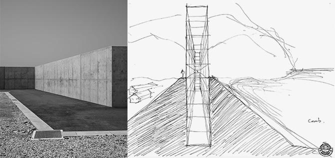 建築家のハッチソン氏は実際に東北沿岸部を歩いて撮影した写真から、既存の社会学的、地質学的要素や建造物の状態を調査・研究し、パラフィクション的な観点から、コミュニティと海を再び結びつけつつ、インクルーシブに命を守る防災インフラを提案します。