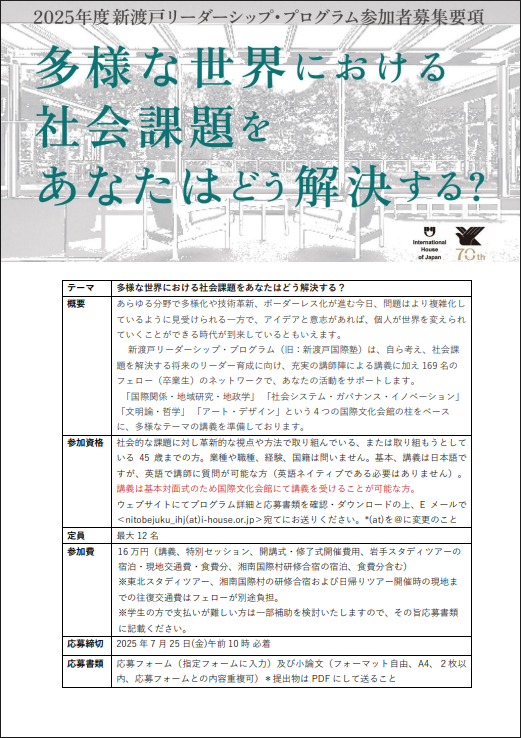 2025年度新渡戸リーダーシップ募集要項