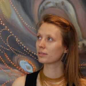 カテリナは日本で伊勢型紙(切り絵の一種)や生け花、浮世絵を学ぼうと考えています。2006年より、切り絵の構造的な複雑さや緻密さ、物理的な直接性に興味をもち、その可能性を探っています。同様に、彼女は自身の作品によく花と植物のモチーフを使いますが、そこに生け花との共通点を見いだしています。芸術としての生け花を、植物に見いだされる対称性や規則だった模様、そして花の生来の美への応答であると考えているからです。彼女が描く絵は、もう一つの俗世の風景を創造しようと試みた成果であり、多分に浮世絵の伝統に触発されたものですが、日本でのより深い浮世絵研究から、さらなる刺激が得られるのではないかと期待しています。