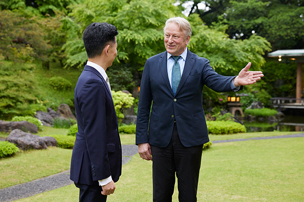 ブリュンガー氏: 欧州は戦後70年以上経て平和構築が進んで一安心していました。しかしそれは脆くも崩れ、昨年ウクライナ戦争が始まりました。地続きで緊張関係のある国に囲まれたドイツの人間として、日本も他人事ではないと申し上げたい。いま日本は欧州同様に危険な状態です。島国だがロシアや中国、朝鮮半島など、隣接する地域との緊張が明らかに高まっています。ですから今こそ隣国との対話の場を作るべきで、会館はそれができるはずです。近藤さんの会館理事長就任の契機が、ベルリンの友人に「早く日本に帰国して平和構築に取り掛かった方がよい」とのアドバイスがあったから、という逸話を聞いたことがありますが、それには共鳴し感動しました。